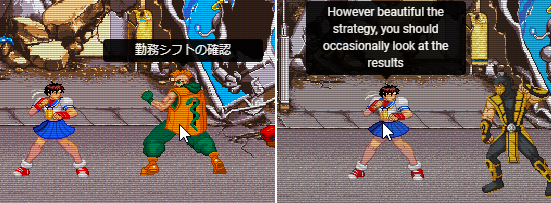 また、自分キャラ(なぜセーラー服?)にマウスオンすると、格言みたいなものが。