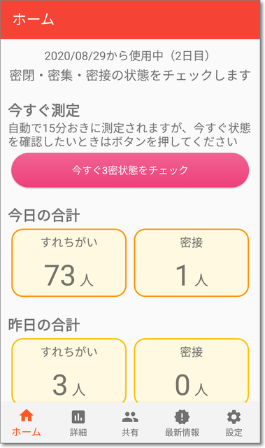 どの程度、3密な生活になっているかを、チェックしてくれるアプリ。
