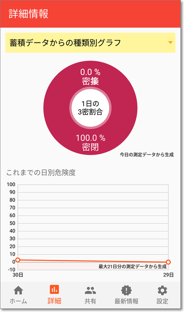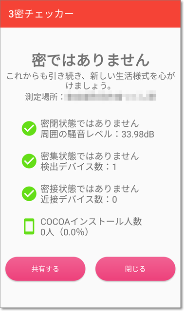 「今すぐ3密状態をチェック」をタップすると、現状を分析してくれます。