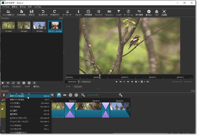 「音声トラックを追加」して、BGMを入れてみます。