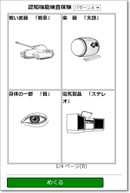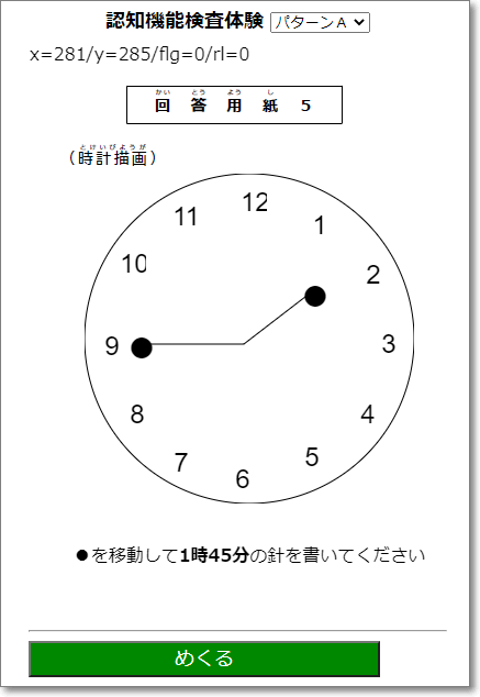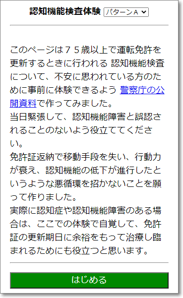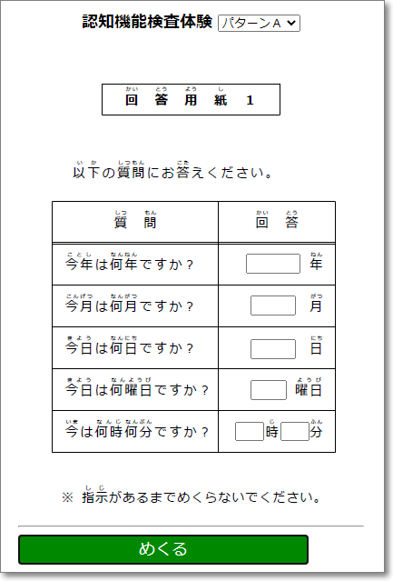 高齢者の運転免許更新で実施される「認知機能検査」の、模擬テスト。