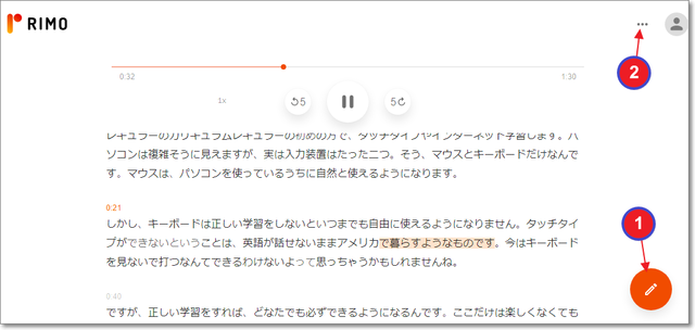 また、文字部分をクリックすると、その部分から音声の再生が始まります。