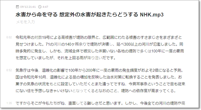 ボクの環境が悪いのかな、音声ファイルの4倍ぐらいの時間がかかりました。