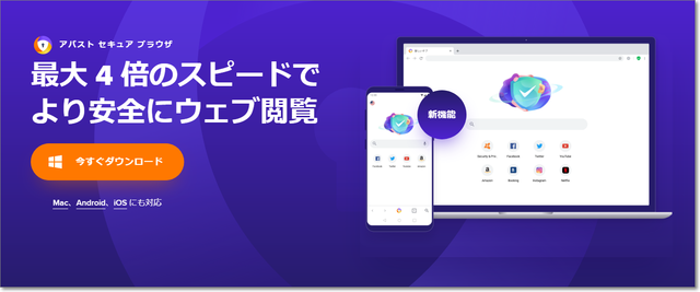 セキュリティソフトの大手「avast」の出したブラウザ。