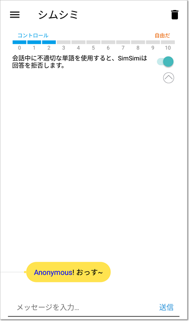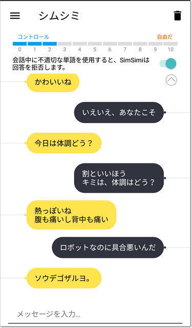 いっぽう「SimSimi」は、そっけない異性とデートしている感じ。