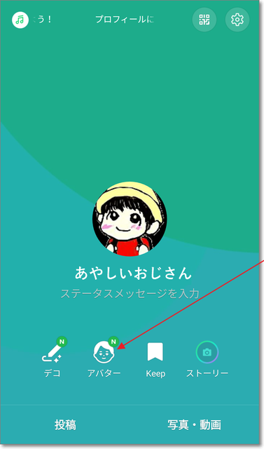 ホーム画面で、自分のアイコンをタップ→「アバター」。
