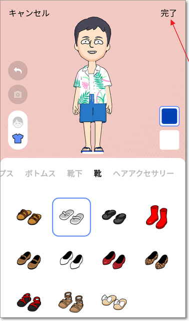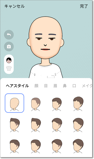 一般のアバター作成アプリと同じく、各パーツを変更していきます。