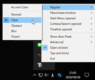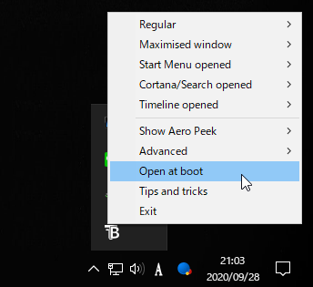 タスクトレイ・アイコンを右クリック→「Open at boot」で、