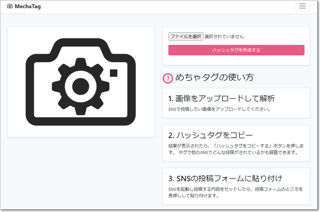 写真から、ハッシュタグを自動生成してくれるサービス。