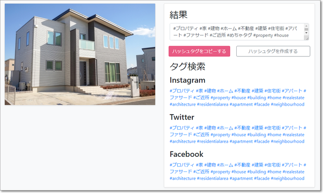 ちゃんと住宅と認識して、ハッシュタグを作っています。