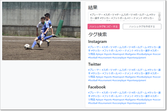 ツイッターやインスタに使うハッシュタグを作ってくれます。