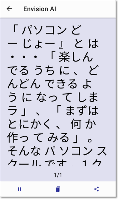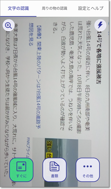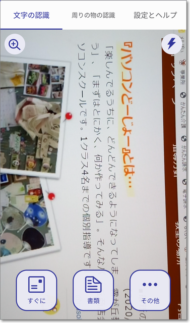書類にスマホを合わせてタップ→テキスト化して読み上げ。