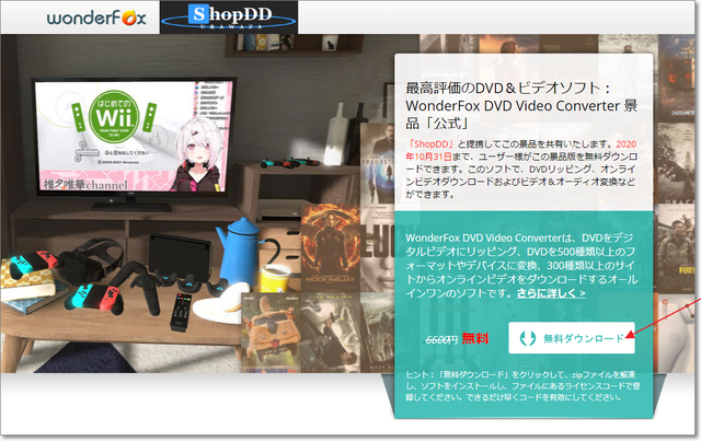有料ソフト「WonderFox DVD Video Converter」の無料キャンペーン情報です。