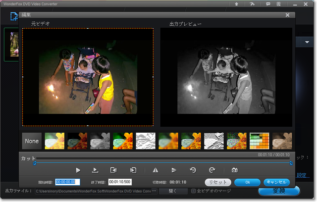 「ファイル追加」メニューで登録した動画ファイルの「編集」から、