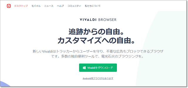「Vivaldiをダウンロード」をクリック→入手したファイルを実行してインストール。