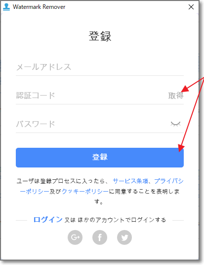 60秒以内に認証コードと希望のパスワードを入力して、「登録」。