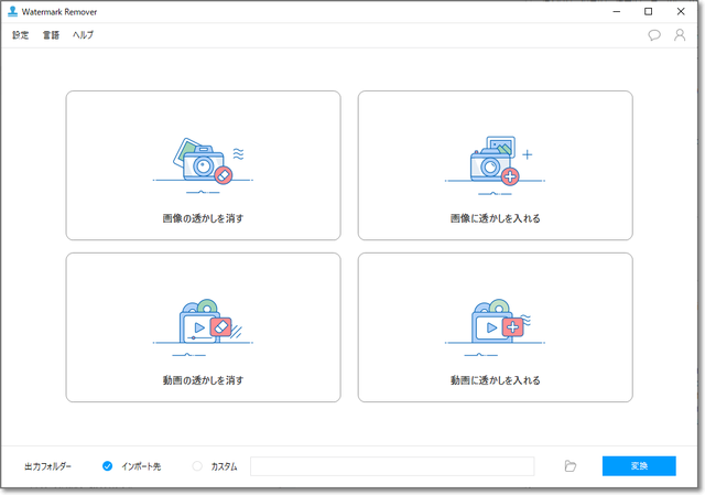 動画・画像それぞれで、「透かしを消す」・「透かしを入れる」機能があります。