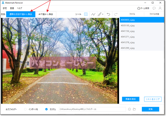 「画像の透かしを消す」をクリックして、写真をまとめてドラッグ&ドロップ。