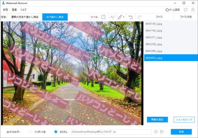 と思いつつ、「AIで透かし除去」のほうを試したら・・・
