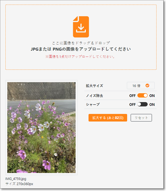 写真を、最大各辺16倍まできれいに拡大してくれるWebサービス。