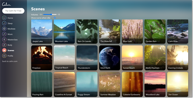 左カラム「Scenes」で、いろんな環境音を聞けます。