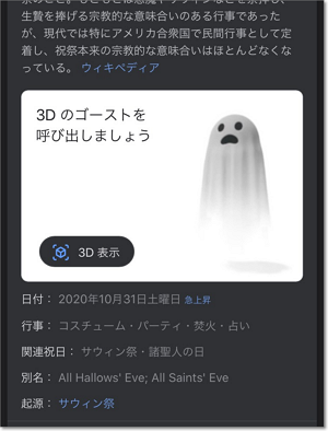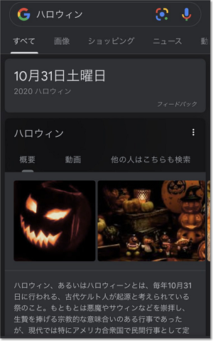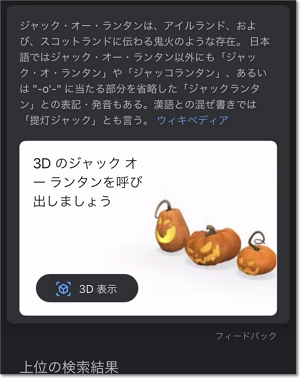 スマホのGoogleアプリで「ハロウィン」「ジャックオランタン」