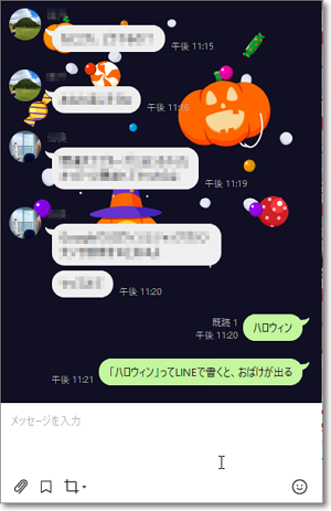 LINEで「ハロウィン」って書くと、陽気なおばけが弾けます。