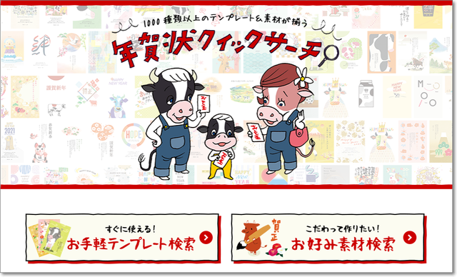 「イラストだけほしい」という場合は、「年賀状クイックサーチ」をどうぞ。