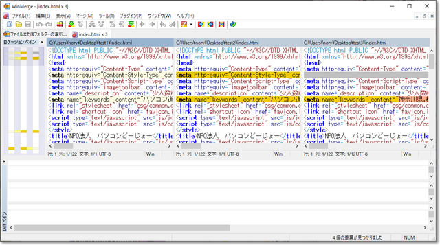 2ファイル比較だけでなく、3ファイル比較まで対応しています。