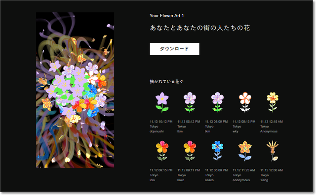 「Your Flower Artを手に入れる」で、他の人の花も加えた画像を入手。