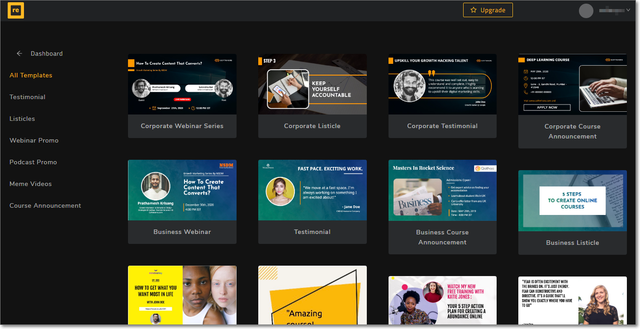 なお、左カラム「Templates」で、いろんなテンプレート動画が出ます。