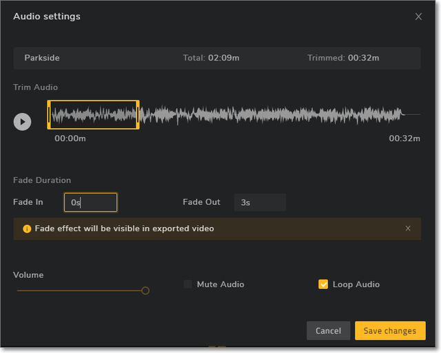 さらに「Add Audio」で、BGM用の音楽ファイルを入れます。