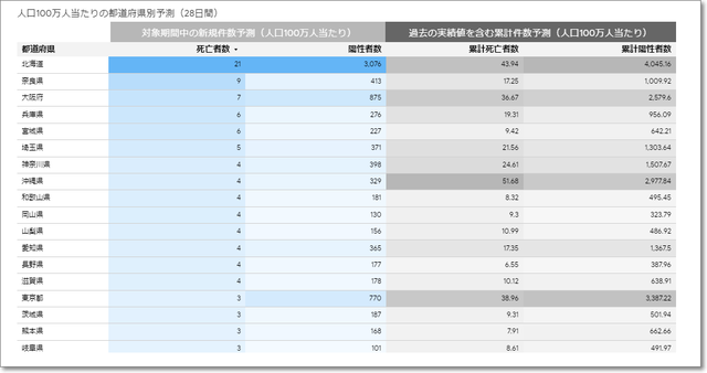 「人口100万人当たりの都道府県別予測」もあります。
