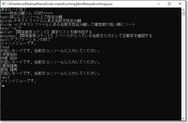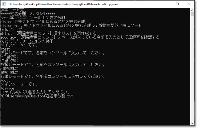 「NameDivider-masterconfirmpgbinReleaseconfirmpg.exe」を実行。