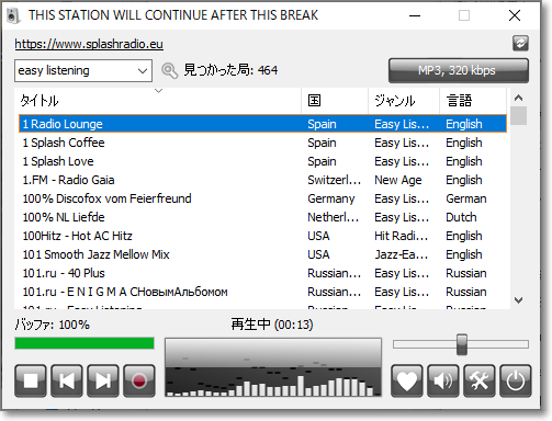 「タイトル」をダブルクリックして、接続できるとラジオが鳴り出します。
