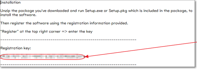 「Readme.txt」を開くと、Registration keyが書かれています。