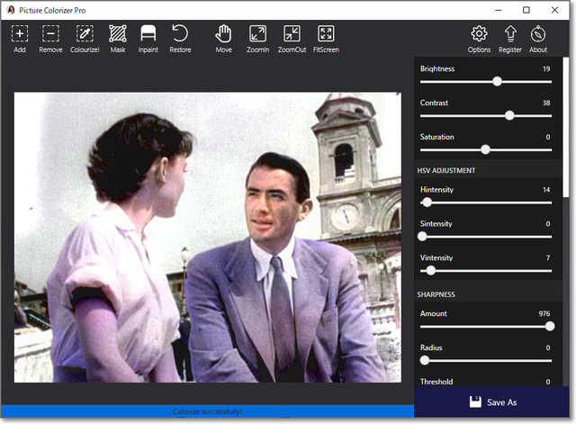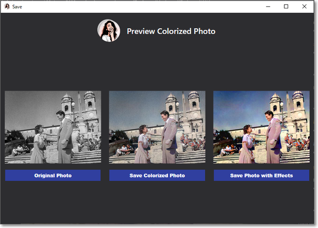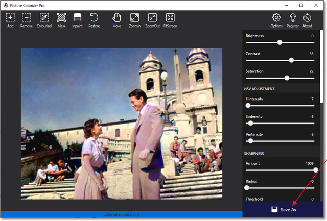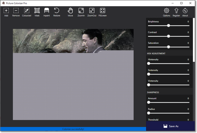 写真をドラッグ&ドロップ→「Colourize!」(ツールバー左から3つ目)だけ。