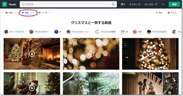 写真だけでなく、動画素材もあって、しかも日本語対応。