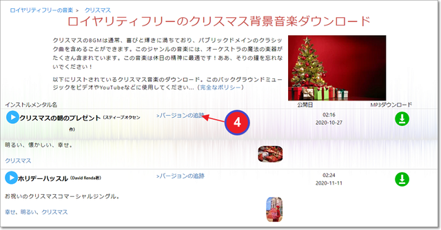 曲の長さ・テンポなどバージョンを選べます。
