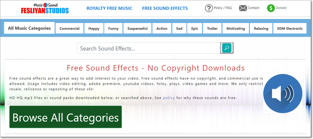 ①「Free Sound Effects(効果音)」では、効果音が入手できます。