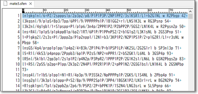 たとえば「mate3.sfen」を、メモ帳やテキストエディターなどで開くと・・・