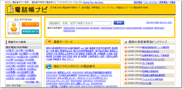 固定電話やガラケーは、サイトで検索。