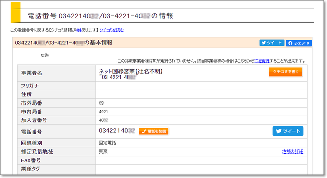 このサイトで調べてから、コールバックする/しないを決めるのがオススメ。