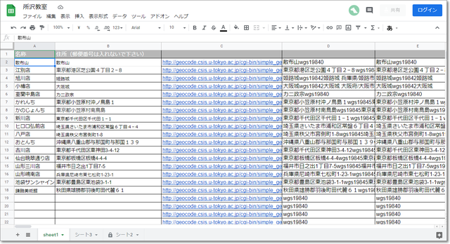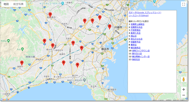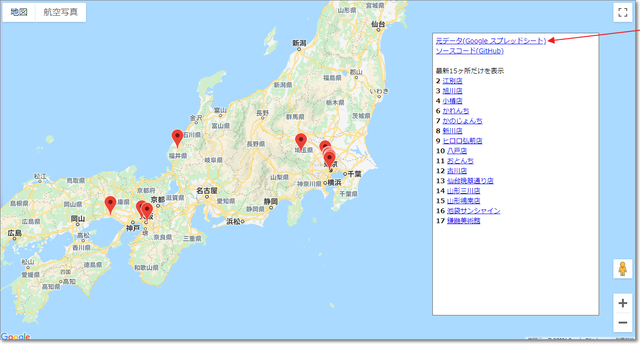 住所データをGoogleスプレッドシートに入力すると、Google地図に一覧表示してくれるツール。