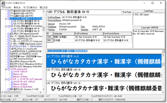 インストールされているフォントの一覧、アンインストール、一時インストールなど、