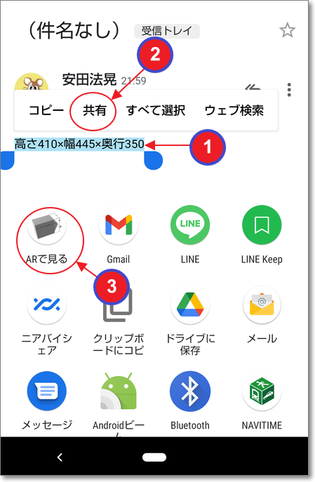 ③「ARで見る」を選択。