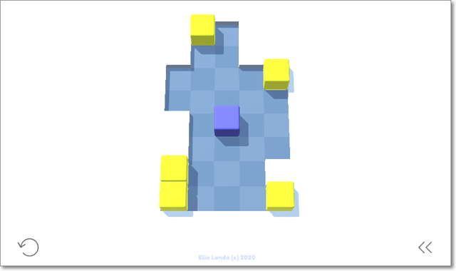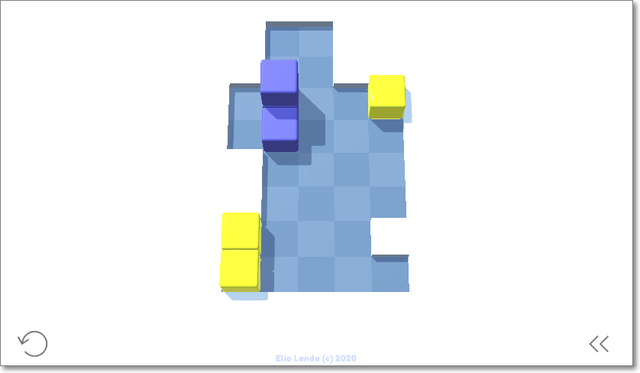 カーソルキーで青いキューブを転がして、周りの黄色すべてを合体させればOK。