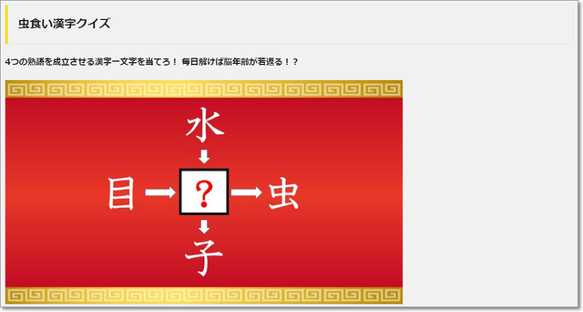 虫食い漢字クイズは、とても全部はできないほどたくさんあります。