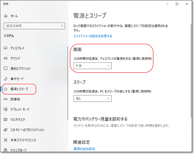 「パソコンの電源ボタンで画面オフにする設定がある」
