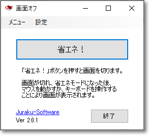 モニター電源をオフにしたいときだけ起動して、「省エネ!」をクリックするだけ。